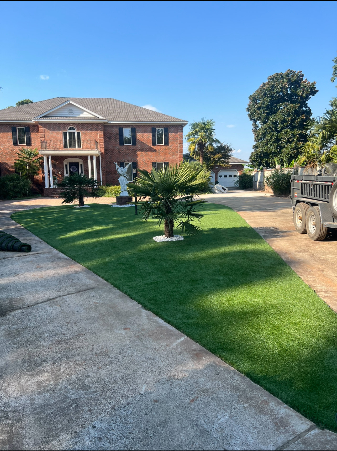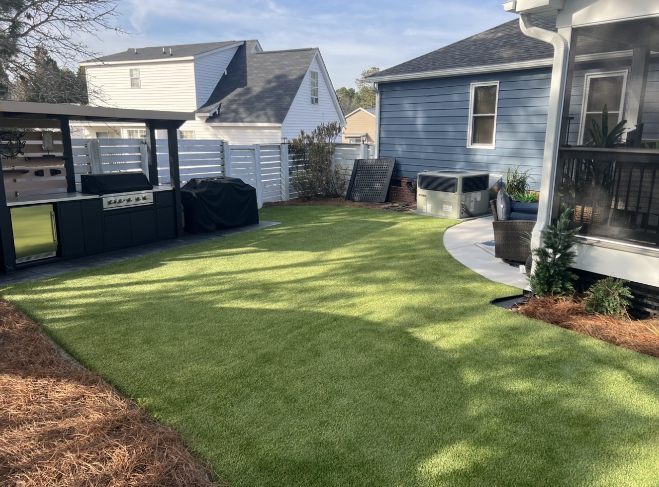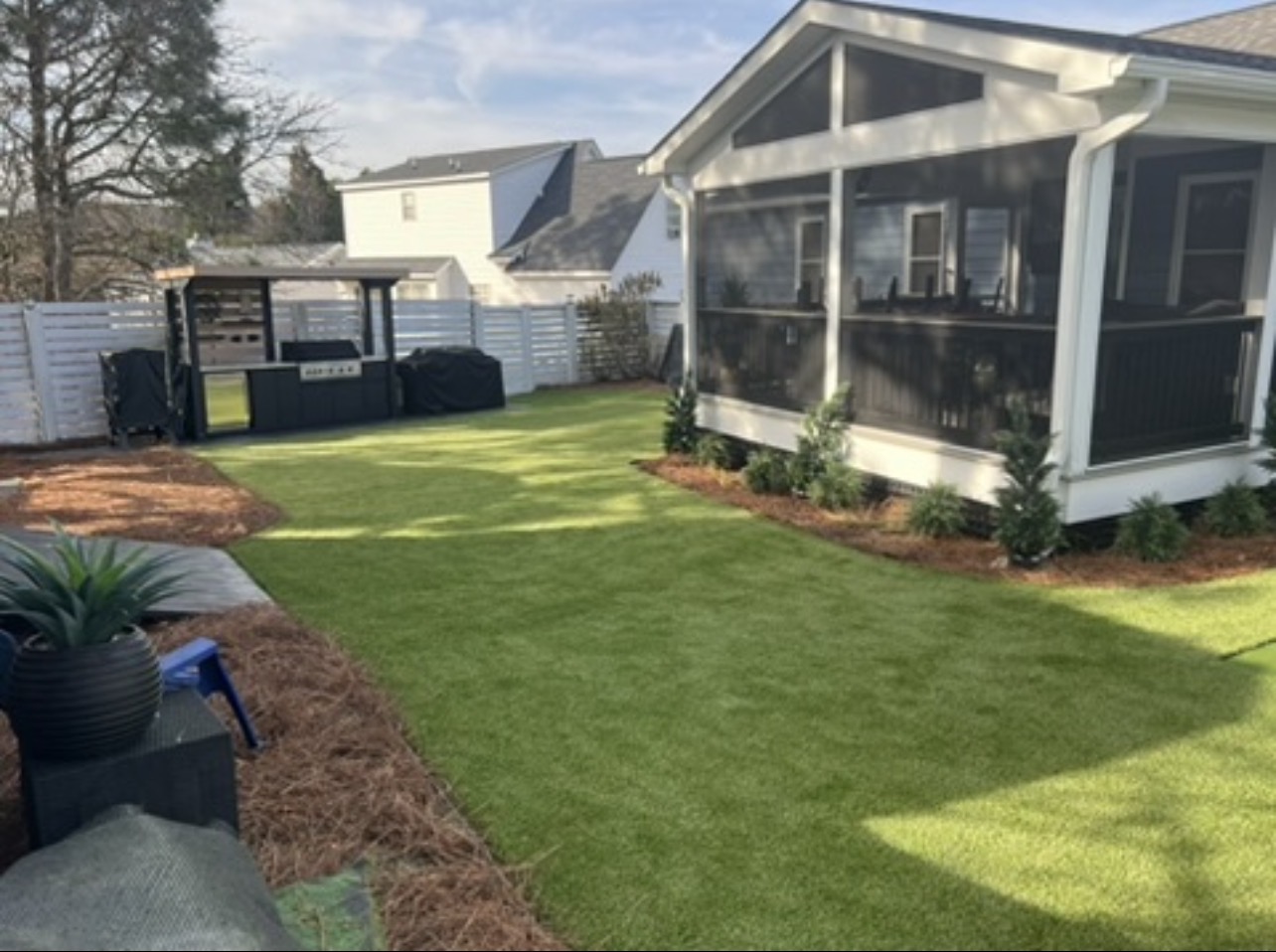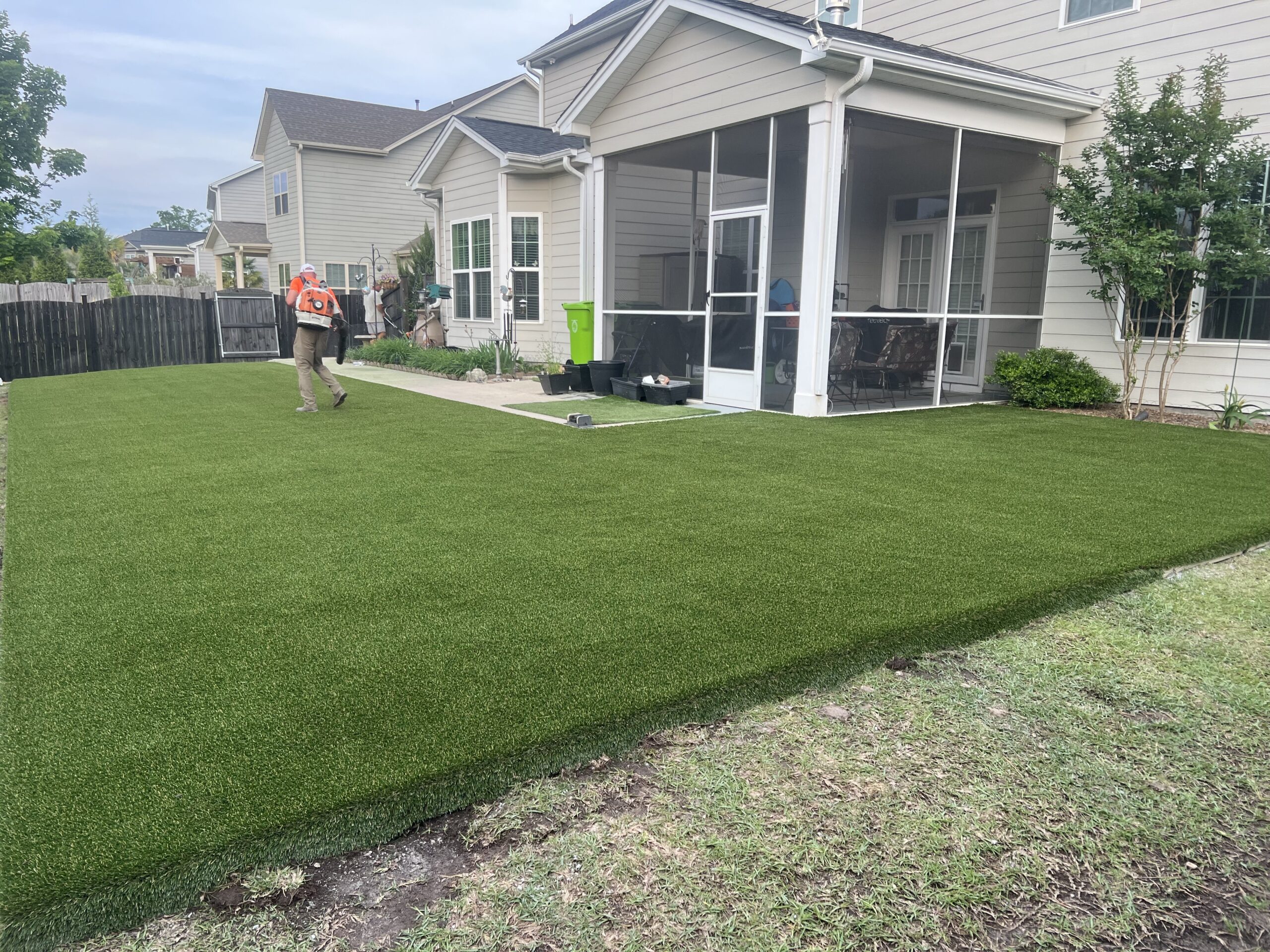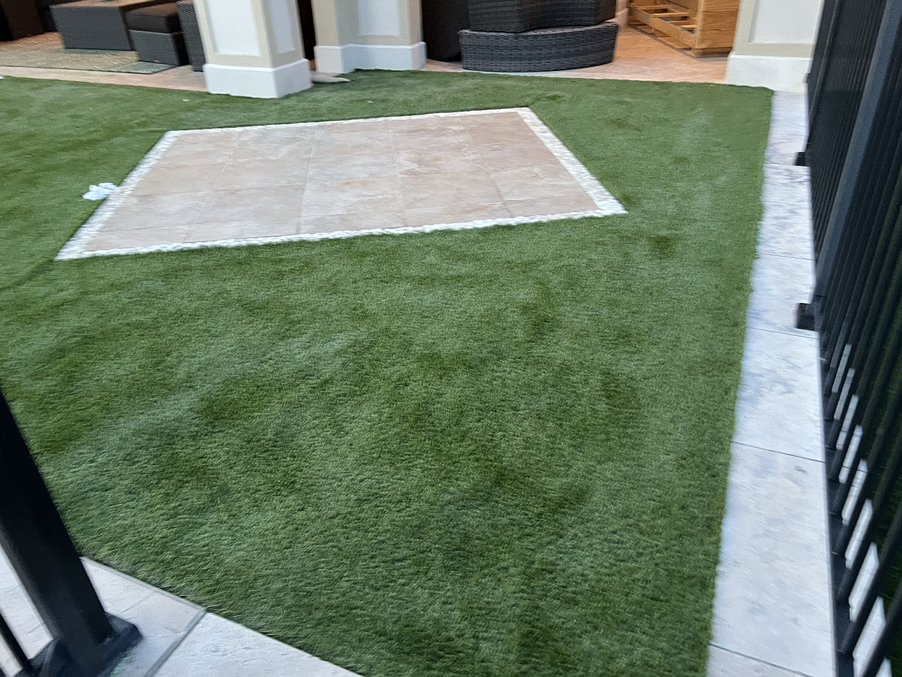 NOTE: Any white on the turf is infill sand that is sticking to the fibers of the turf through static electricity from the power broom. The infill normally settles in a couple days.