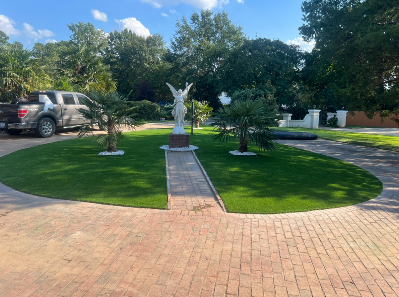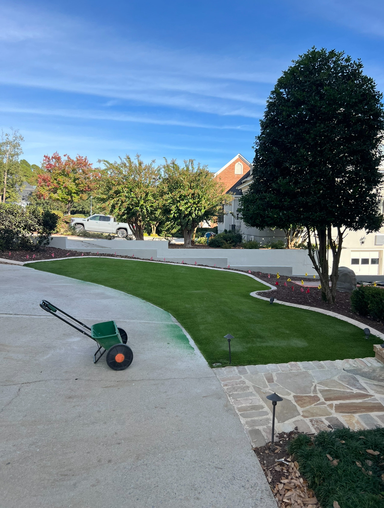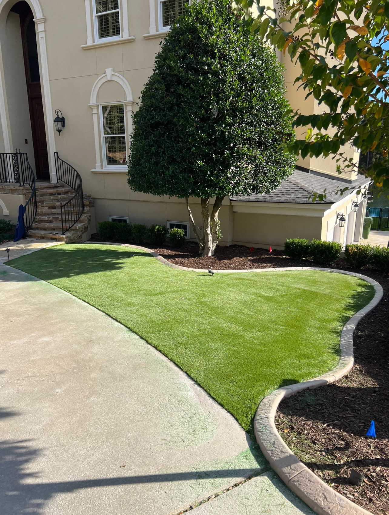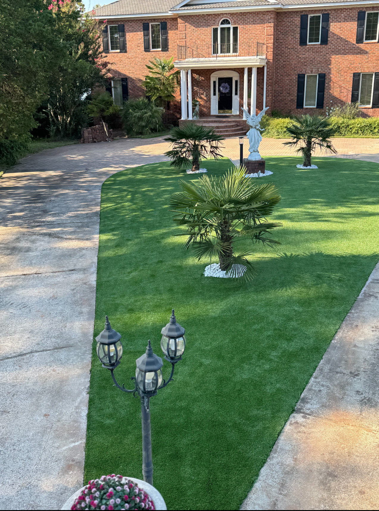 NOTE: Any white on the turf is infill sand that is sticking to the fibers of the turf through static electricity from the power broom. The infill normally settles in a couple days.